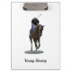 Galloping Thoroughbred Horse And Rider, Clipboard. Digital Art. Spirited Thoroughbred and his rider in morning workout. Show how proud you are of the horse work you do. Transparent background. Fully customisable; make it your own. Your choice to keep or replace the current photo.