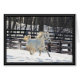 A galloping white horse in the snow