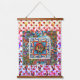 The polyester fabric displayed many wrinkles and several sharp creases throughout. At the bottom of the tapestry, I noticed a bulge in the fabric because it was not pulled tight enough before being connected to the wooden boards. It took me over an hour to spay water on the tapestry before putting it on an ironing board where I used a warm iron over a polyester cloth to remove the wrinkles and creases in the material. I was able to get out the wrinkles and creases that made that tapestry look as beautiful as its picture.