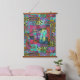 The polyester fabric displayed many wrinkles and several sharp creases throughout. At the bottom of the tapestry, I noticed a bulge in the fabric because it was not pulled tight enough before being connected to the wooden boards. It took me over an hour to spay water on the tapestry before putting it on an ironing board where I used a warm iron over a polyester cloth to remove the wrinkles and creases in the material. I was able to get out the wrinkles and creases that made that tapestry look as beautiful as its picture.