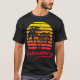 This cool and awesome tee shirt features a classic vintage sunset inspired by retro vhs tapes of famous tv shows and movie posters. Palm trees and seagulls in front of a beautiful tropical sun that glows in yellow, red, orange and pink colours.