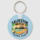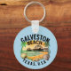 Customisable keychain featuring a retro style vignette of the Galveston Beach, TX waterfront.  Add name or message on back.