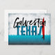 Galveston Texas surfing design. A red surfboard with blue and turquoise text - typography surfer theme.