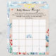 Game "Bingo" WHAT WILL THE FUTURE MOTHER RECEIVE? for baby shower. A sheet of paper is decorated with watercolor illustrations of plants with soft pastel emerald and blue leaves, branches, rainbows and soft pink flowers.