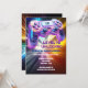 A modern and cool illustration of a see through pink and black plastic video game controller that has the birthday boy or girls age on the digital panel. Templates in pink, white and blue appear on a neon starburst background that may be personalised to suit the occasion. These are ideal for gamer party and gaming celebrations. Ideal for adults and kids.