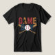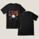 A bold and minimalistic "Game Day" graphic featuring a distressed design. The letter "O" is replaced by a detailed baseball, while crossed bats below the word "Game" emphasize the sporting theme. A silhouette of a batter in action enhances the dynamic appeal, making this design perfect for game day apparel and accessories.