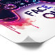 Game Face On! Controller Art- A black gaming controller with glowing neon pink and blue accents is depicted against a white background. The controller is positioned in the centre of the image, with the words "GAME" and "FACE ON!" written in a bold, black, brushstroke font above and below it. The background features abstract watercolor-like splashes of pink, blue, and red, creating a powerful and energetic atmosphere.