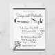 This classy invitation for a game night features a white background with black, retro style, sophisticated text. The text can be changed and made custom to your own personal information.