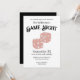 These custom party invitations feature a Game Night theme. An image of playing dice are printed in the centre in a pink glitter design. The phrase "Game Night" is printed above the dice with a sample family name. You can personalise the game party invitations to include your own custom name or text.