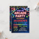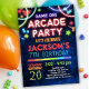 Neon glow rainbow colours arcade games birthday party invitation for boys and girls