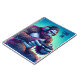 Funny notebook with an ai illustration of a psychedelic bigfoot playing video games with headphones on. Purple and blue hues and text that say game on but can be personalised.