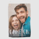 Modern & Trendy Photo golf towel. Design featuring your favourite single photo and ''GAME ON'' typography script. Personalise with a family name or text.