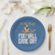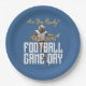 Football game day personalised party paper plates super fans will love featuring a football player on a blue background. Perfect for the big game, whether high school, college or the pros. MATCHING items in our collection.