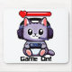 Adorable gamer cat holding a console controller wearing a headset, with a health bar and text (Game On!).
