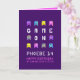 Purple and pink, blue and yellow colorful alien monster pixel graphic characters on dark purple, personalized 14th sister birthday card. Fun crazy block graphic pixel 3d crazy monsters aliens video gaming themed sister or other relatives birthday card. Other matching items are available. Designed by www.mylittleeden.com on Zazzle.