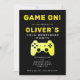 Game On Video Game Controler Gaming Birthday Invitation. Yellow gaming controller on a black background.