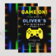 Game On Video Game Controler Gaming Birthday Invitation. Gaming controller on a vivid colourful neon light background.