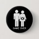 The universal man and woman symbols, holding hands, woman showing a womb/foetus, and with "Game Over" text caption. B/W design, on t-shirts, sweatshirts, cards, gifts.
