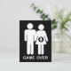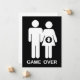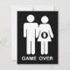 The universal man and woman symbols, holding hands, woman showing a womb/foetus, and with "Game Over" text caption. B/W design, on t-shirts, sweatshirts, cards, gifts.