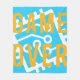 This graphic boldly captures the phrase "GAME OVER" set against a vibrant blue background, intertwined with an abstract, circuit board-inspired design in white. The design's high-contrast, bold yellow letters grab attention, while the intricate circuit lines evoke the essence of digital technology and gaming. This visual interplay between text and circuitry not only appeals to gamers but also creatively symbolises the end of a digital journey or game. This image would be perfect for gaming related content, apparel, or even as a stylish poster for a gaming room.