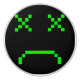 Broken and sad game over face. Black background with green face. Design created by Black Brook Photography with graphic from Pixabay September 2015.