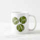 Coffee mug features trio of tennis balls with text overlays reading "Game, Set and Match"