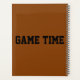 This planner features a collection of football decals throughout with a hand holding a football tearing through the background showcasing the words Game Time in jella semibold print fonts with brown letters black outline over a white background cover in this football lovers planner. The planner's pages of are printed on high-quality paper with wire binding and grid transparency with "Game Time" printed accross the back. This planner includes a monthly overview and weekly planning space made with 60 lbs. paper. This planner will make the perfect gift for yourself or others.