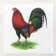 The dark red American Game is a strikingly handsome fellow, his mate is coloured in rich browns with salmon breast. Commissioned by Kenny Troiano for his book on game fowl colours.