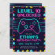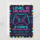 Gamer birthday invitation designed for teens who love video games and retro arcade style.