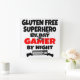 This text design features the phrase "Gluten Free Superhero by Day Gamer by Night" and is perfect for anyone that lives a gluten free life and loves playing video or computer games.