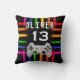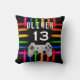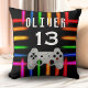 Gamer Video Game Controller Neon Birthday Throw Pillow. Gaming controller on a vivid colourful neon lights on a black background. Add your name and age.