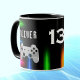 Gamer Video Game Controller Neon Name Age Mug. Gaming controller on a vivid colourful neon lights on a black background. Add your name and age. Great as a birthday gift for a real gamer.