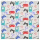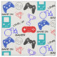Cute gamer themed pattern with console controllers and fun game icons in blue, red black and white, ideal for kids projects and makes.