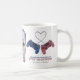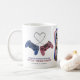 Fun Cute Couples Gaming Photo Mug! Design features two console controllers, linked by a heart wire and the text 'Couples that play together, Stay together!', their names and a photograph of your choice.