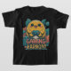 A vibrant cartoon t-shirt design featuring the phrase "Gaming Harmony" in a bold, multicolored font. The design is surrounded by playful game-themed illustrations like controllers, coins, and stars, creating a fun and energetic atmosphere. The bright colours and whimsical elements make it a perfect choice for gamers who appreciate a touch of humour and nostalgia.