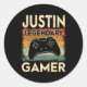 Gaming Personalised Name Justin Legendary Gamer Classic Round Sticker