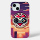 This pixel art-style mobile case features a nostalgic gaming theme. A retro-style video game controller is prominently displayed in the centre, surrounded by a ring of pixelated hearts. The controller sits against a backdrop of a vibrant sunset over a futuristic cityscape, with towering skyscrapers and a pixelated ocean. The words "PRESS START" are inscribed on the controller, adding to the gaming aesthetic.