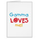Gamma Loves Me T-shirts, cards, stickers, bodysuits bags, and more with colourful red, yellow, and blue text and heart design. These Gamma Loves me apparel and gift items will make gamma smile!