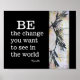 Gandhi quote be the change poster in black and white with original nature art. Wall art for decor in home or office Original artwork copyright Ann Powell all rights reserved.