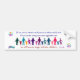 Bumper sticker with a quote from Mahatma Gandhi saying "If we are to attain real peace in this world, and if we are to carry on a war against war, we will have to begin with the children." Images included are peace sign, peace dove and people holding hands.