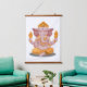 Ganesh hanging tapestry, showcasing intricate patterns and vibrant colours. The tapestry depicts the Hindu deity Ganesh, known for wisdom, prosperity, and the removal of obstacles. The design incorporates traditional Indian motifs and symbols, such as the lotus flower, the conch shell, and the axe. The overall feel is auspicious and spiritually uplifting, perfect for those who seek blessings and protection from the deity.