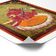 Ganesha getting ready to throw his lotus. Basohli miniature. "Attired in an orange dhoti, his body is enitirely red. On the three points of his tiny crown, budding lotuses have been fixed. Gaṇeśa holds in his two right hands the rosary and a cup filled with three modakas (a fourth substituted by the curving trunk is just about to be tasted). In his two left hands, Gaṇeśa holds a large lotus above and an axe below, with its handle leaning against his shoulder. In the Mudgalapurāṇa (VII, 70), in order to kill the demon of egotism (Mamāsura) who had attacked him, Gaṇeśa Vighnarāja throws his lotus at him. Unable to bear the fragrance of the divine flower, the demon surrenders to Gaṇeśa."