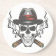 Gangster skull with fedora hat coaster