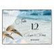 Wedding table number card featuring two gannets on the beach. Beautiful for a coastal wedding celebration for animal lovers.