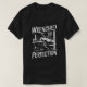 Depict a vintage car on a lift with tools scattered around, and a grunge font saying "Wrenched to Perfection."