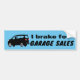Warning! I brake for GARAGE SALES! Just a courtesy to let your fellow drivers know that you're on the way to do some Garage Sale picking. Hopefully, we'll get that last collectable piece you been looking for. Or find some books for decorating, a few used but still amazing Christmas ornaments or those odd smalls that are always so plentiful. Choose your favourite colour for a background to replace our blue sticker. How about a colour to match your car. Give a bumper shout out!