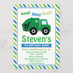 Garbage Truck Birthday, Garbage Truck 8th Birthday Invitation