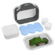 The box itself is very modern and functional, the ice pack is critical out here in Tucson. My sister made a picture of the lunchbox her Facebook profile photo. I think she likes it... Printing looked great, like the lunchbox was a company staple. And it got here really fast.