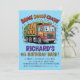 I chose the larger postcard sized one, as the font would be large for older eyes, and customised it keeping the Rail Ticket theme on the front, with venue address/date/time of party, and on the back I added another steam train and various 80 speed limit/rail signages. The trick is not to overdo it or it looks too busy. I also added at one end of the front side, a word of thanks from the birthday boy.