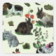 Garden Animals Rabbit Cat Dog Flowers Square Sticker